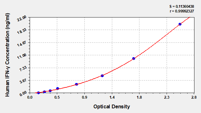 產品描述:人γ干擾素(IFN-γ)酶聯免疫試劑盒(CSB-E04577h)為雙抗夾心法ELISA試劑盒,定量檢測組織培養上清液樣本中的IFNG含量。IFNG,即干擾素-γ,是一種重要的II型干擾素,具有抗病毒、抗腫瘤和免疫調節功能。其研究機制主要涉及激活JAK/STAT信號通路,調節基因轉錄,影響免疫細胞活性,并在腫瘤微環境中發揮復雜的作用,既可促進腫瘤細胞凋亡,也可能促進腫瘤生長。試劑盒檢測范圍為0.312 ng/ml-20 ng/ml,靈敏度為0.078 ng/ml。該產品廣泛應用于免疫調控機制研究、疫苗或生物制劑效價評估、感染性疾病模型建立等科研場景,特別適合用于檢測T淋巴細胞、NK細胞等免疫細胞在體外刺激后分泌的IFN - γ水平,為炎癥反應研究、藥物作用靶點驗證及細胞因子網絡調控分析提供可靠數據支持。本品僅用于科研,不用于臨床診斷,產品具體參數及操作步驟詳見產品說明書。