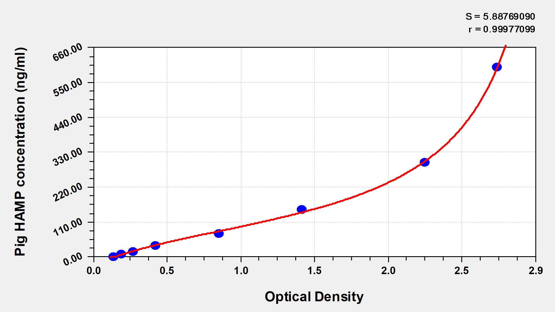 最低檢測限是靈敏度的測試指標(biāo)。由使用的抗體效價(jià)等決定的,在研發(fā)過程中,一般會(huì)優(yōu)化保證高靈敏度、低背景的檢測結(jié)果從而大大提高試劑盒的靈敏度。檢測限越低,靈敏度越高。通過將零標(biāo)準(zhǔn)重復(fù)獲得的平均 O.D. 加上3個(gè)標(biāo)準(zhǔn)偏差來確定靈敏度。
