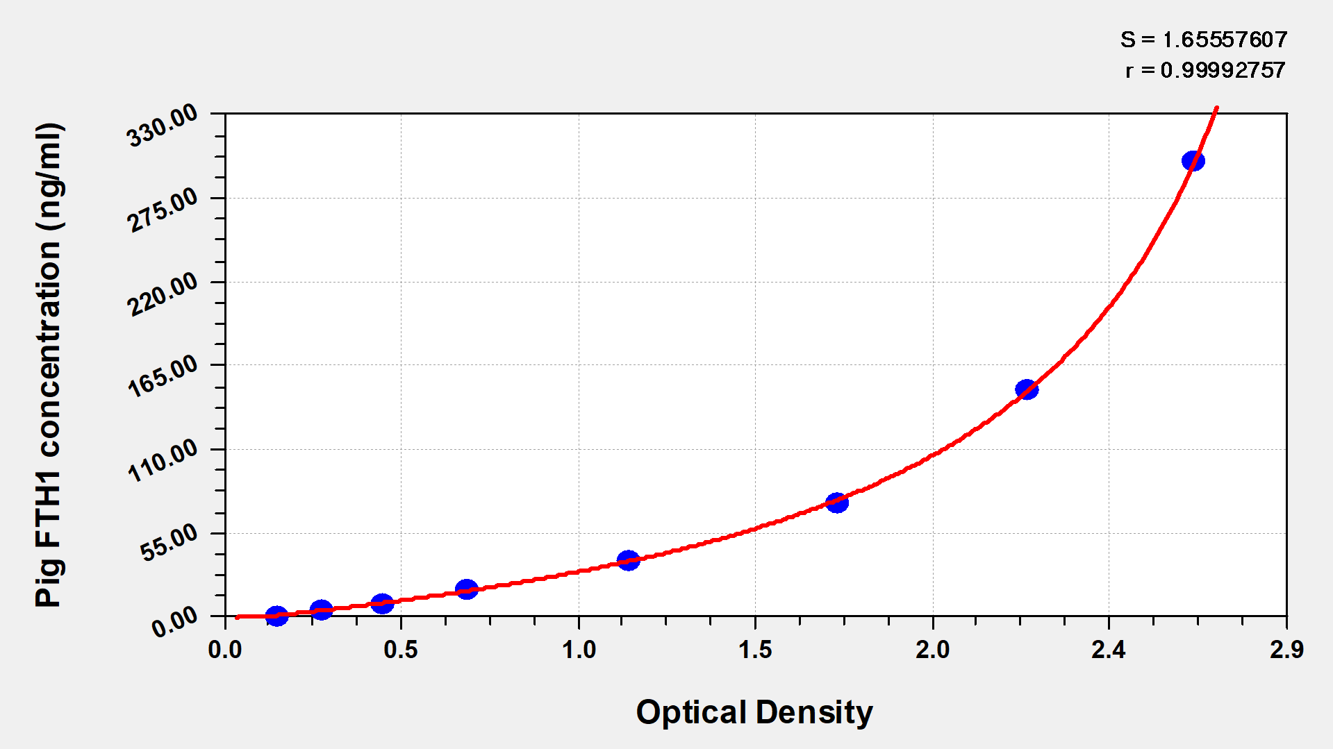 最低檢測限是靈敏度的測試指標。由使用的抗體效價等決定的,在研發過程中,一般會優化保證高靈敏度、低背景的檢測結果從而大大提高試劑盒的靈敏度。檢測限越低,靈敏度越高。通過將零標準重復獲得的平均 O.D. 加上3個標準偏差來確定靈敏度。